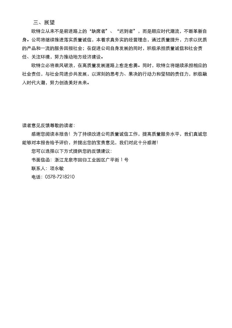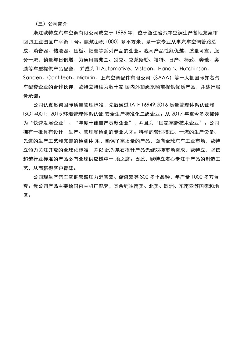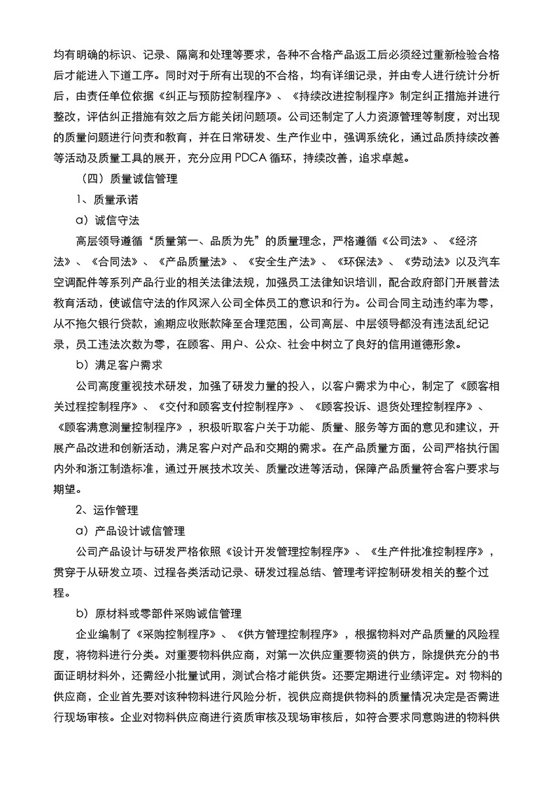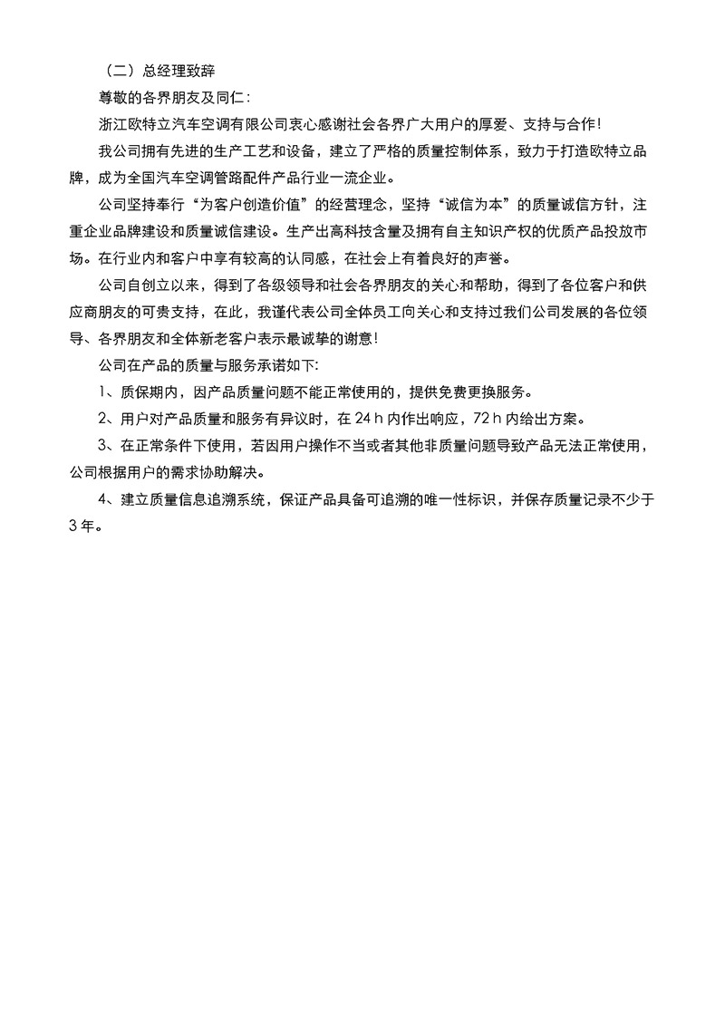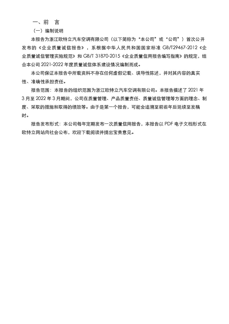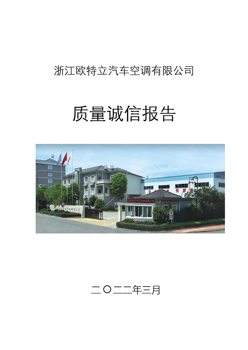 浙江歐特立汽車(chē)空調(diào)有限公司質(zhì)量誠(chéng)信報(bào)告